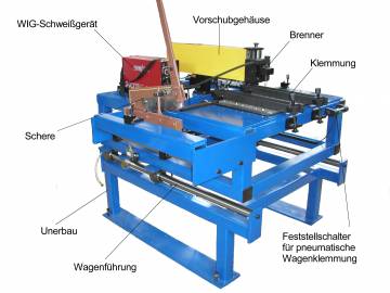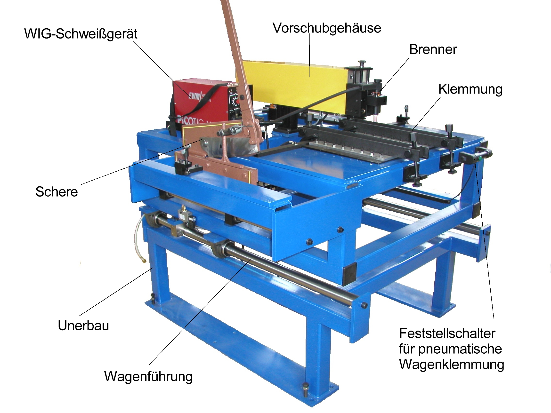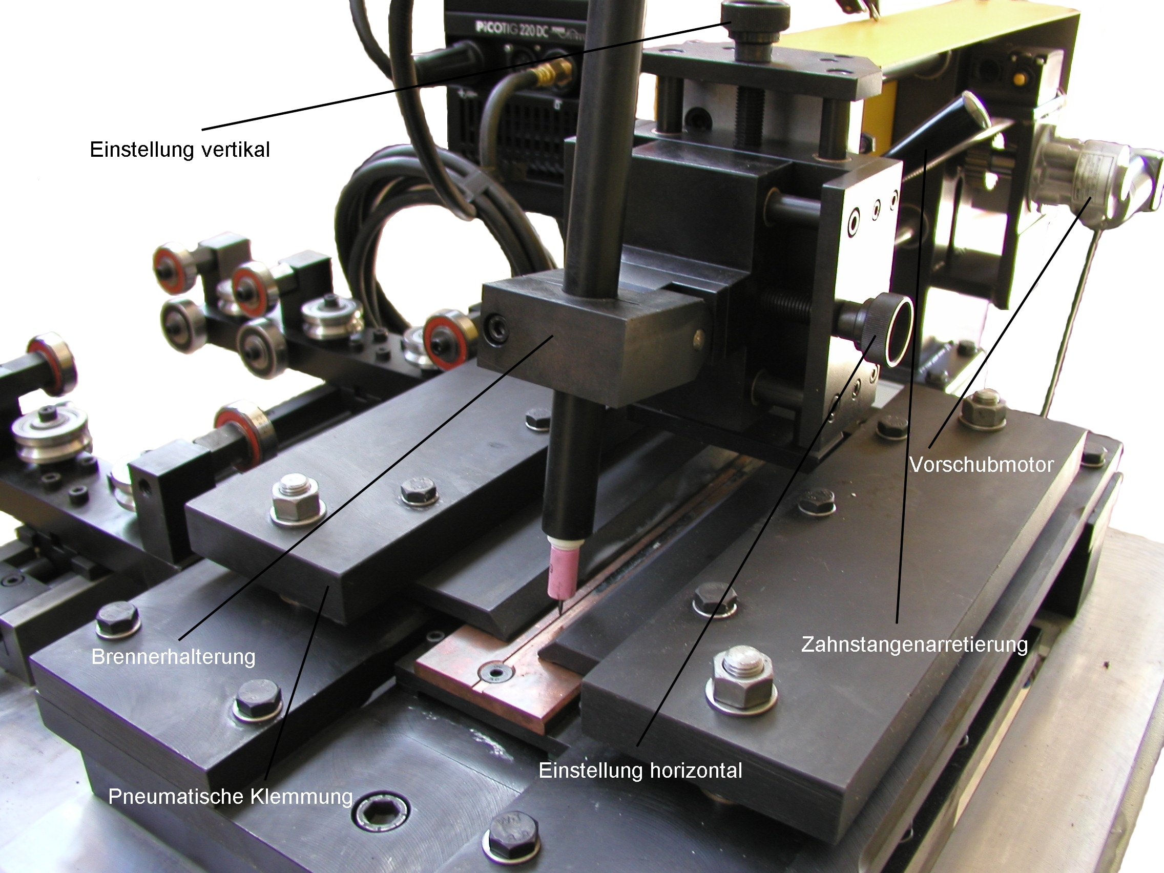 - Klemmung des Schweißverfahrschlittens manuell oder pneumatisch